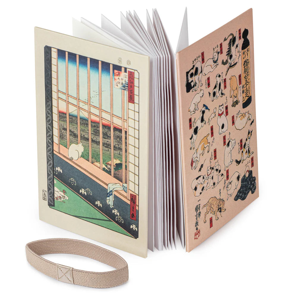 Collect temple and shrine stamps in these traditional goshuin stamp notebooks. Featuring iconic Japanese imagery on both sides of a hardback cover, they include 44 blank white pages in concertina fold, held together with a fabric band. They are a very ‘only in Japan’ way to keep a record of your visits to various places across Japan!