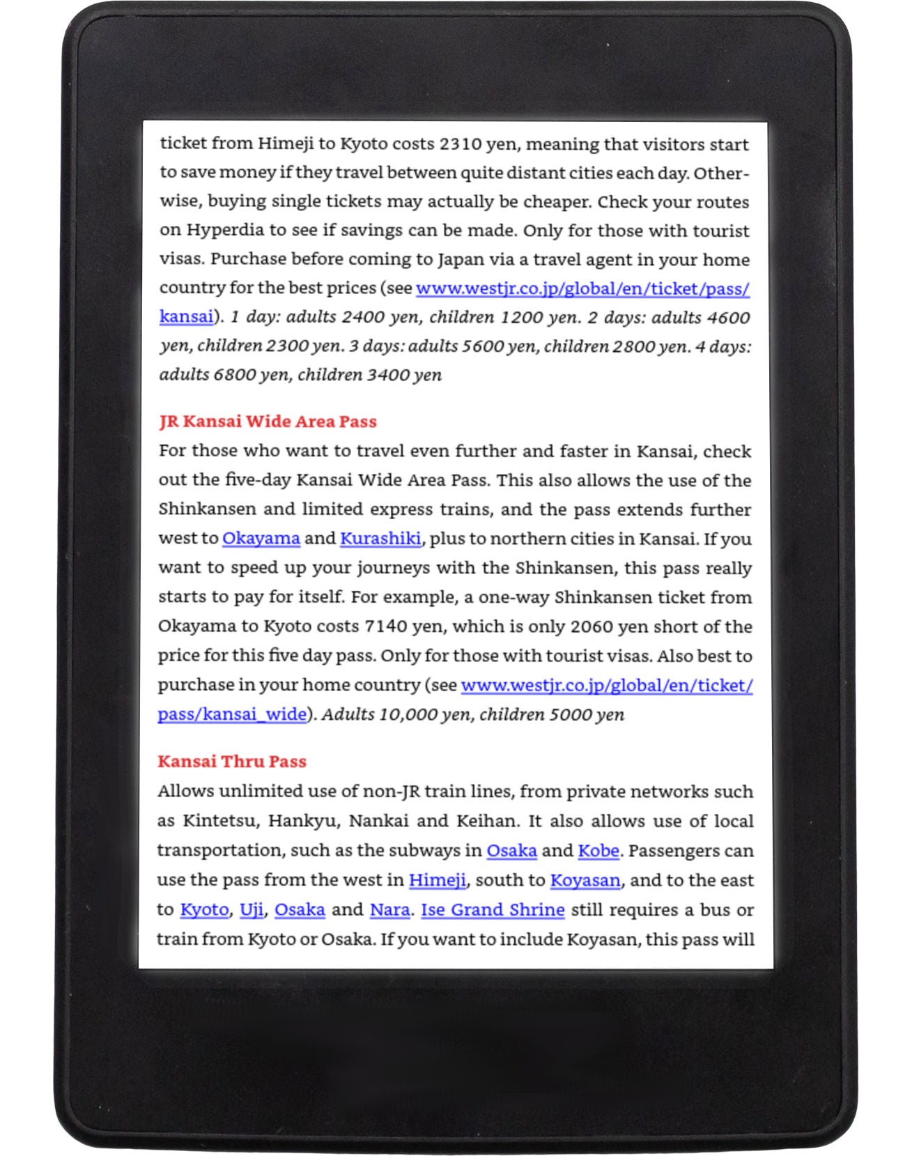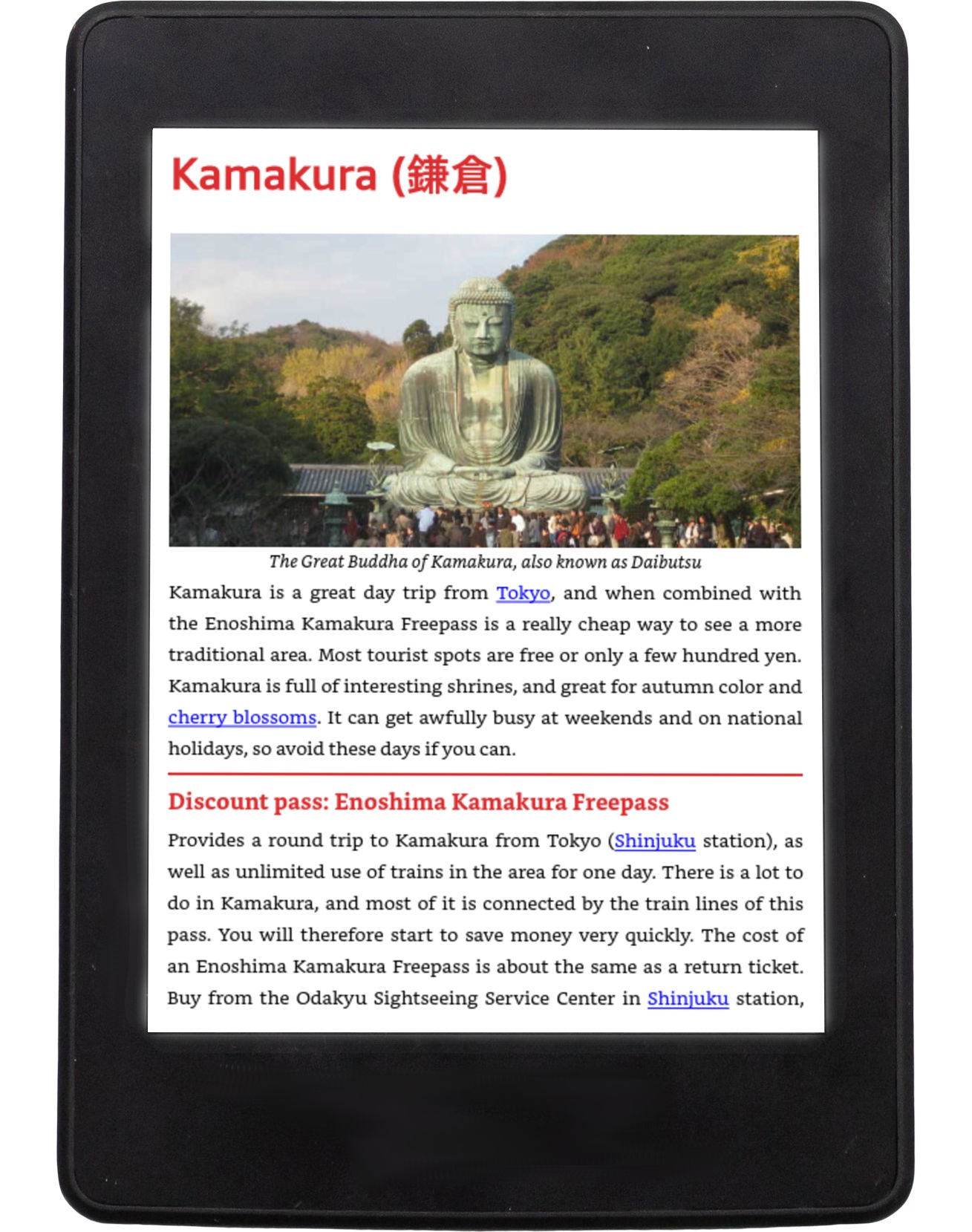 I have been looking forward to the updated version of, ‘ Super Cheap Japan’. I have the kindle edition which not only looks great on an iPad, it reads well and is easy to navigate. I love all the links in blue if you want to find out some more about a place. The maps and symbols are so easy to use. Who needs Lonely Planet or the Rough guide when you have Super Cheap Japan! I can’t wait to use this edition when I next visit Japan.
